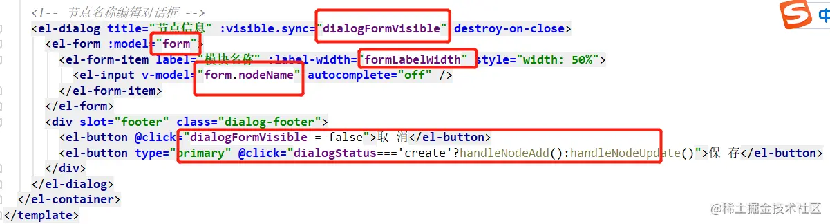 因为传给后端的节点名称是我们输入的,所以这里this.currentNode.name = this.form.nodeName即可。