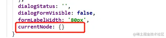 于是,在 return 里新建一个字段currentNode: {}:
