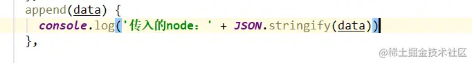 目前我们已经完成了树列表的接口,可以在 append 方法中输出一下传入的 data 里到底是什么。