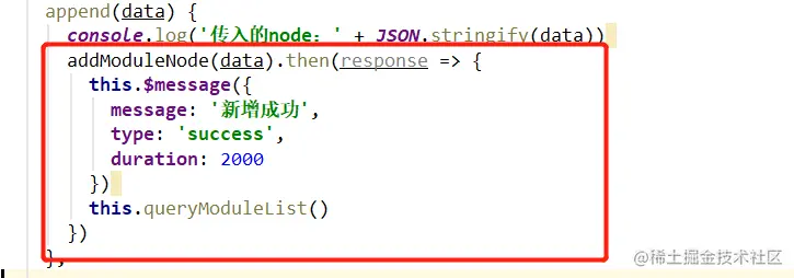 调用接口,增加成功提示,然后刷新树列表。