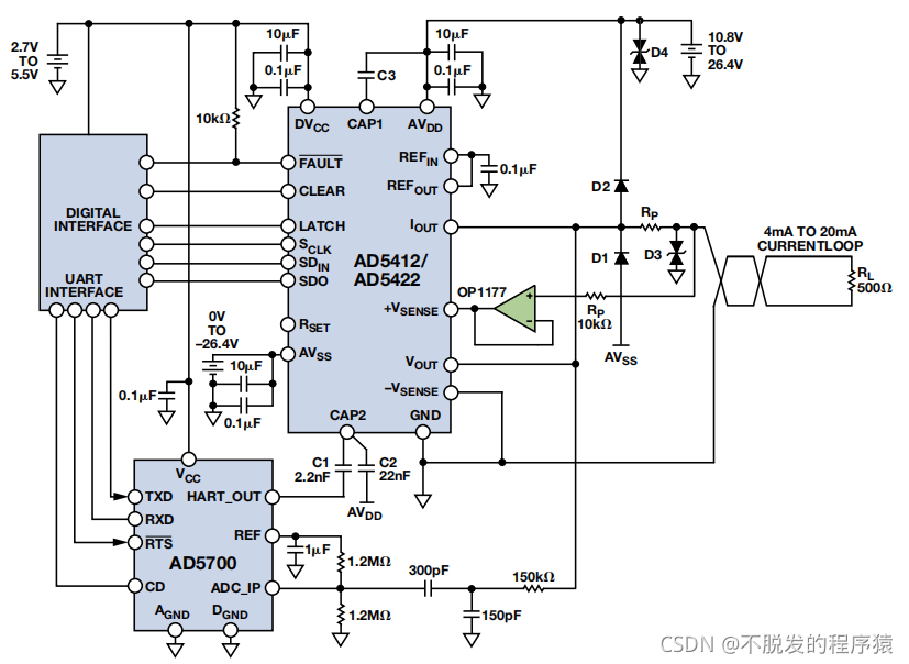 集成HART的4 mA至20 mA电流环路