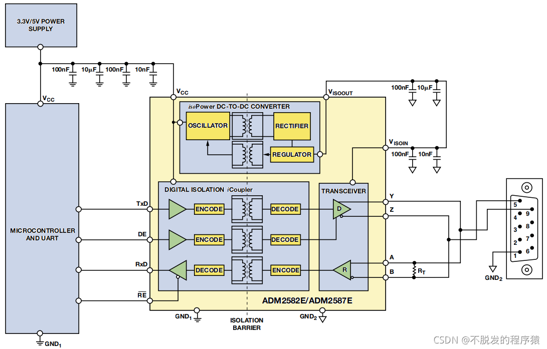 下图显示隔离式RS-485 解决方案: