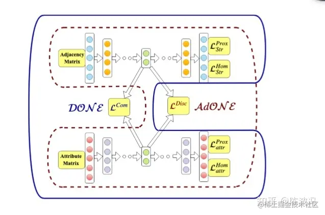 作者分别提出了2个算法Done和Adone。 贡献点在于 1.用一个AE的隐向量代替了G和U。 2.用判别器去代替Procrustes problem,通过最小化判别器的损失,让2个AE生成出来的隐向量维度对齐!!!很聪明!!!