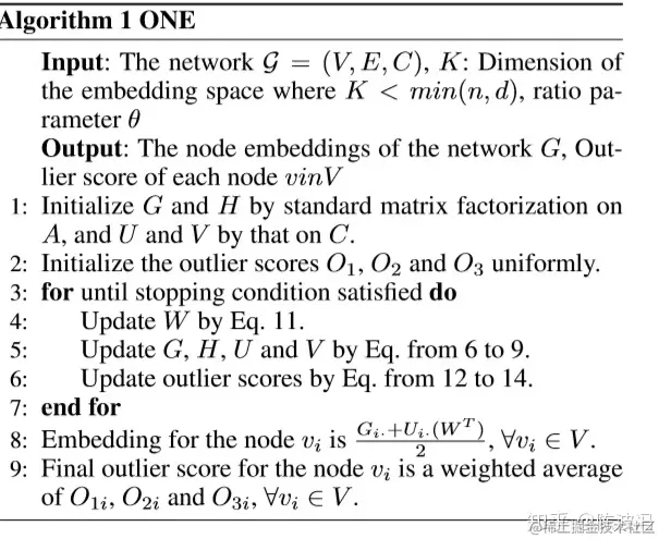 G = (V,E,C), where V = {v1,v2,··· ,vN} ,A是邻接矩阵(N_N),C是内容矩阵(N_K), 图上的研究问题的一个通病A是非常稀疏的,本论文的问题是想要学习好的向量表示的同时做出异常检测工作。(有些异常检测方法无法针对稀疏性换模型)最终获得节点的低维表示。 该问题是个无监督场景(没有任何异常标签信息)下的异常检测问题。下面无论内容还是结构异常检测部分,都是基于重构损失的。