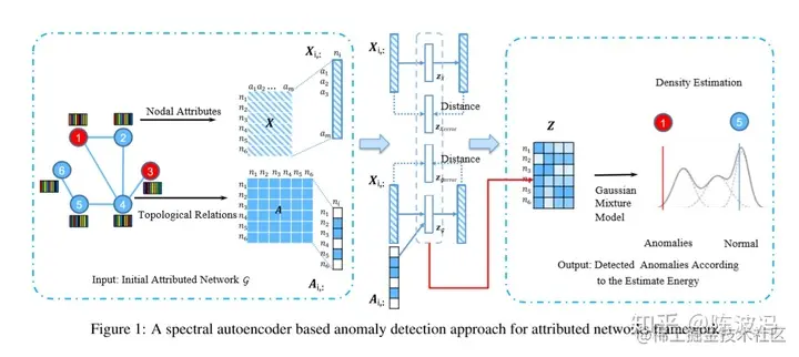 之前的工作都是将拓扑图结构高维向量映射到低维,再去做密度估计。这篇是第一次把AE和GMM联合一起优化。
