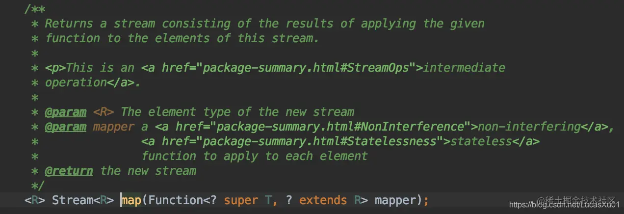 | map(Function f) | 接收一个函数作为参数,该函数会被应用到每个元素上,并将其映射成一个新的元素。 |