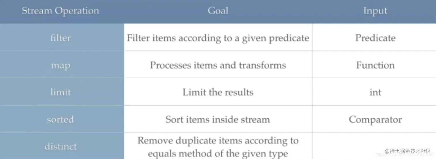 这些中间操作就是我们经常用到的一些Stream的接口用法: