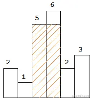 Above is a histogram where width of each bar is 1, given height = [2,1,5,6,2,3].