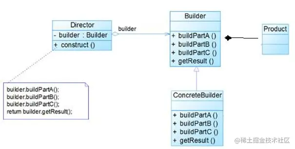 - 可以更加精细地控制产品的创建过程 。将复杂产品的创建步骤分解在不同的方法 中,使得创建过程更加清晰,也更方便使用程序来控制创建过程