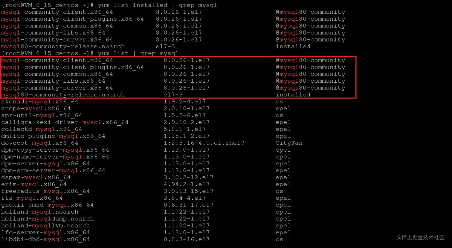 yum list installed:列出所有已安装的软件包 -