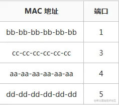 交换机内部维护一张MAC 地址表,记录着每一个 MAC 地址的设备,连接在其哪一个端口上。