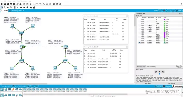 这时路由器 1 连接了路由器 2,所以其路由表有了下一条地址这一个概念,所以它的路由表就变成了这个样子。如果匹配到了有下一跳地址的一项,则需要再次匹配,找到其端口,并找到下一跳 IP 的 MAC 地址。