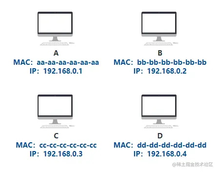 首先,你要给所有的连接到交换机的设备,都起个名字。原来你们叫 ABCD,但现在需要一个更专业的,全局唯一的名字作为标识,你把这个更高端的名字称为MAC 地址。