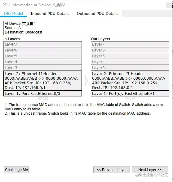 每一步包的传输都会有各层的原始数据,以及专业的过程描述