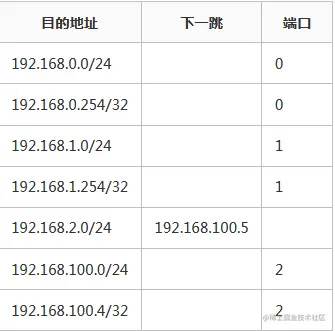 这就很好理解了,路由表就表示,192.168.0.xxx 这个子网下的,都转发到 0 号端口,192.168.1.xxx 这个子网下的,都转发到 1 号端口。下一跳列还没有值,我们先不管
