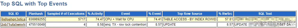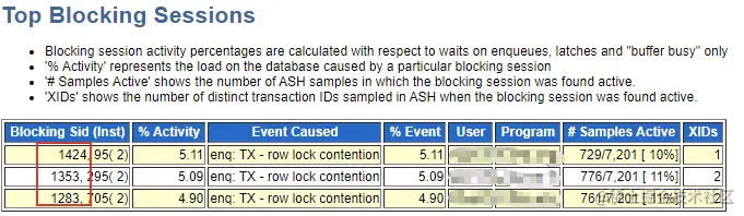 通常,产生enq: TX - row lock contention事件的原因有以下几种可能: