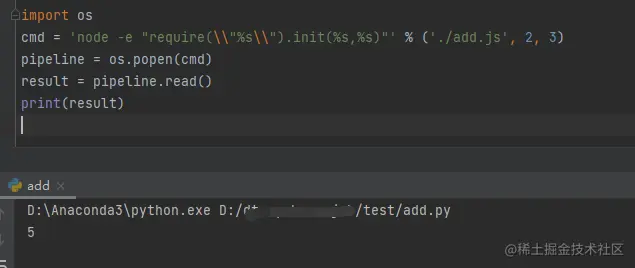 实际上是使用 Python 的os.popen执行 node 命令,执行 JS 脚本