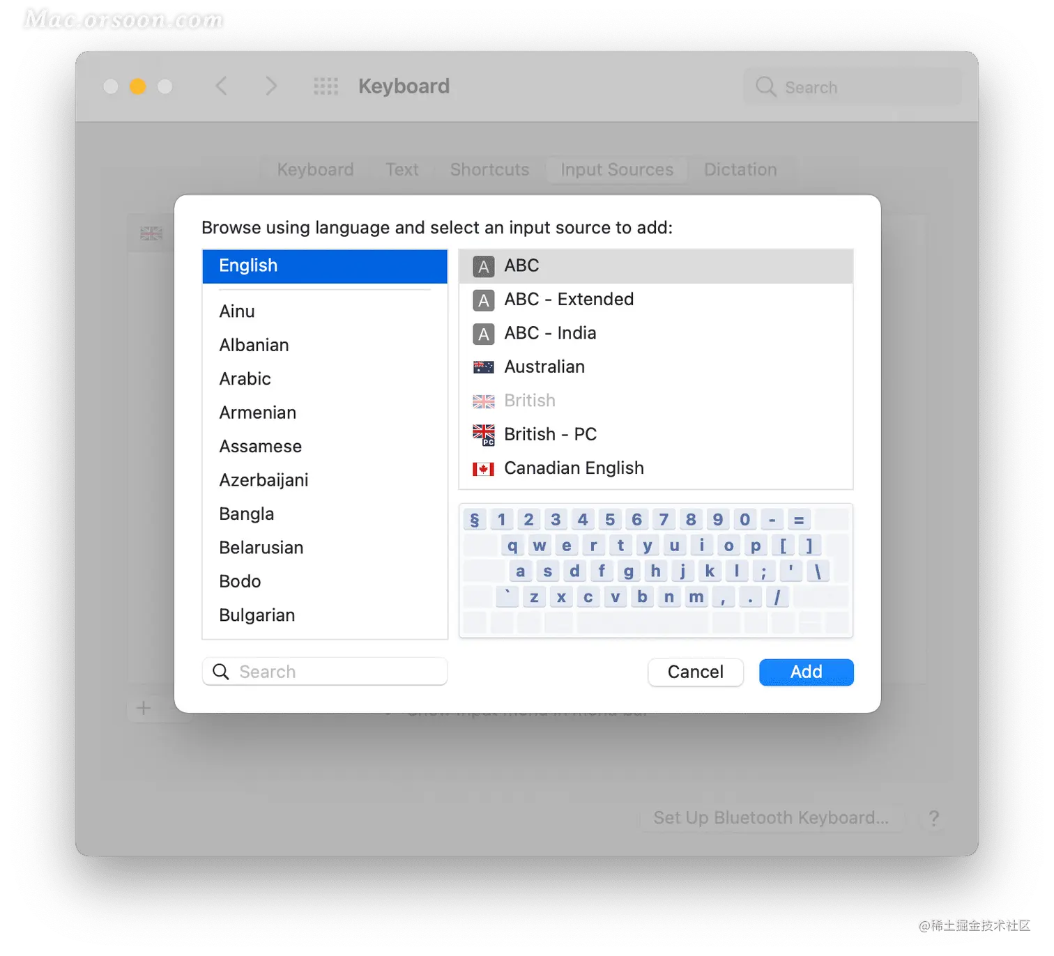既然我们已经更改了系统语言,以便菜单、对话框、网站和应用程序以您选择的语言显示,那么最好更改键盘设置以匹配该语言。如果您要花费大量时间使用与 Mac 附带的语言不同的语言,最好使用专为该语言设计的外部键盘。这意味着特定于该语言的货币标签和其他字符将显示在键帽上,并在您按下该键时出现在屏幕上。