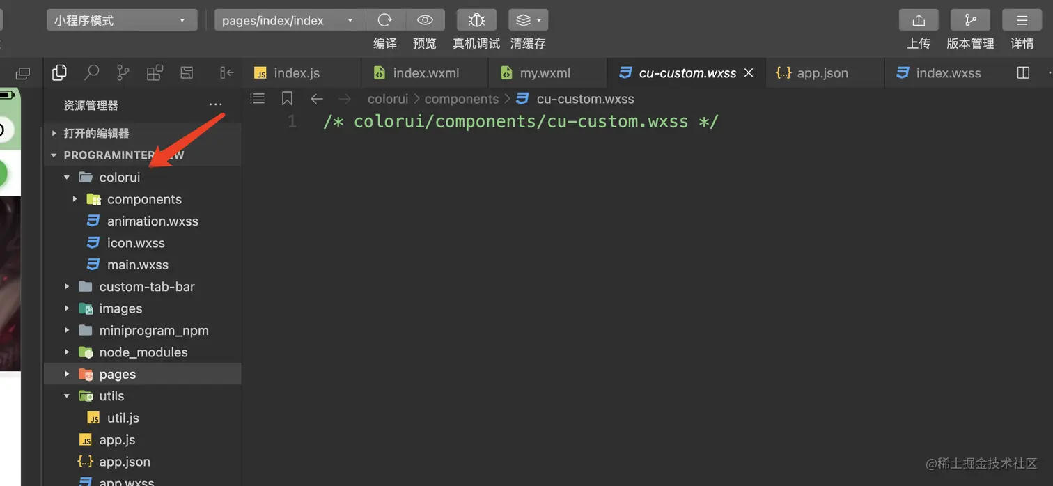 下载下来后,将demo文件夹中的colorui文件夹放入你的小程序项目中