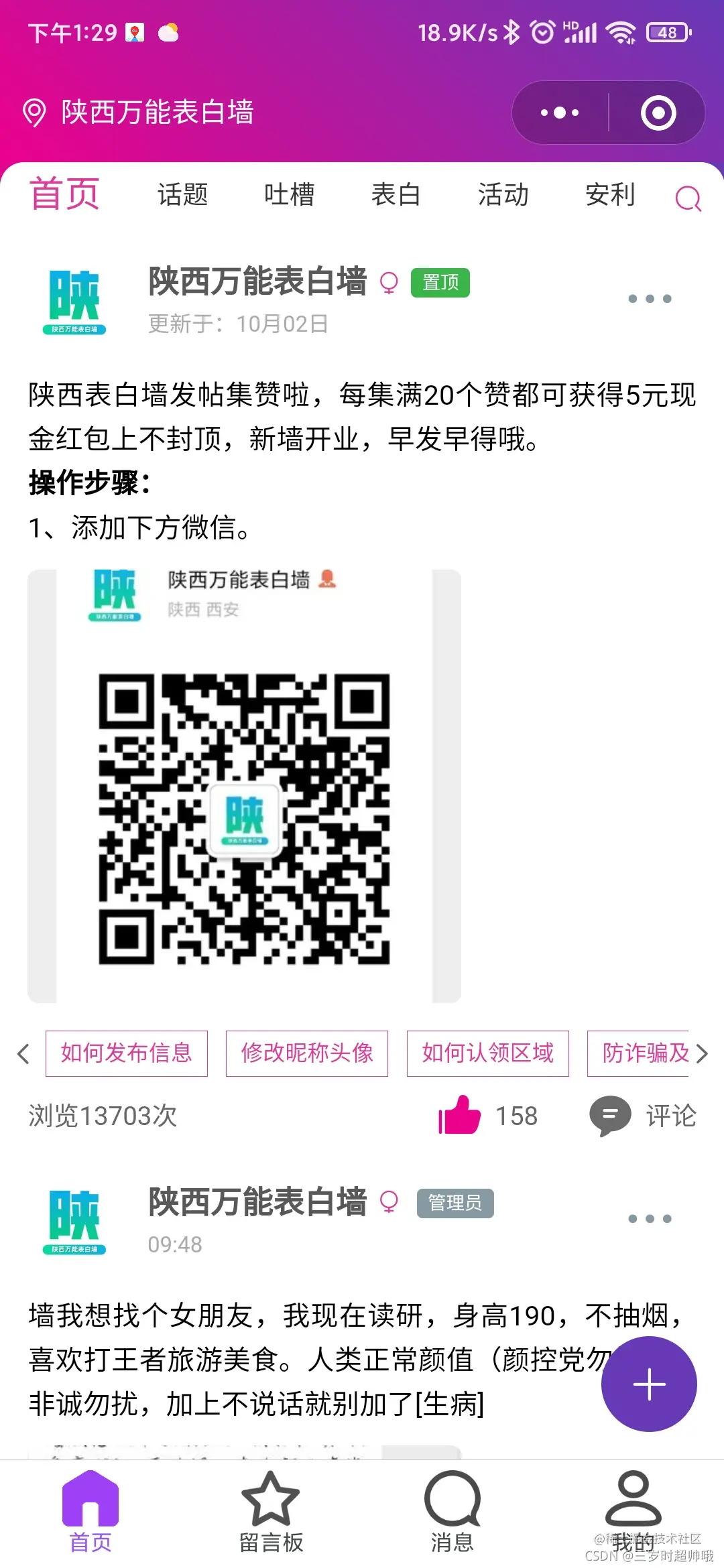 开源微信小程序表白墙、万能墙、社交小程序,打通多区域运营,界面精美已上线,表白墙后台使用Java,可结合微信朋友圈做表白墙、万能墙生态。