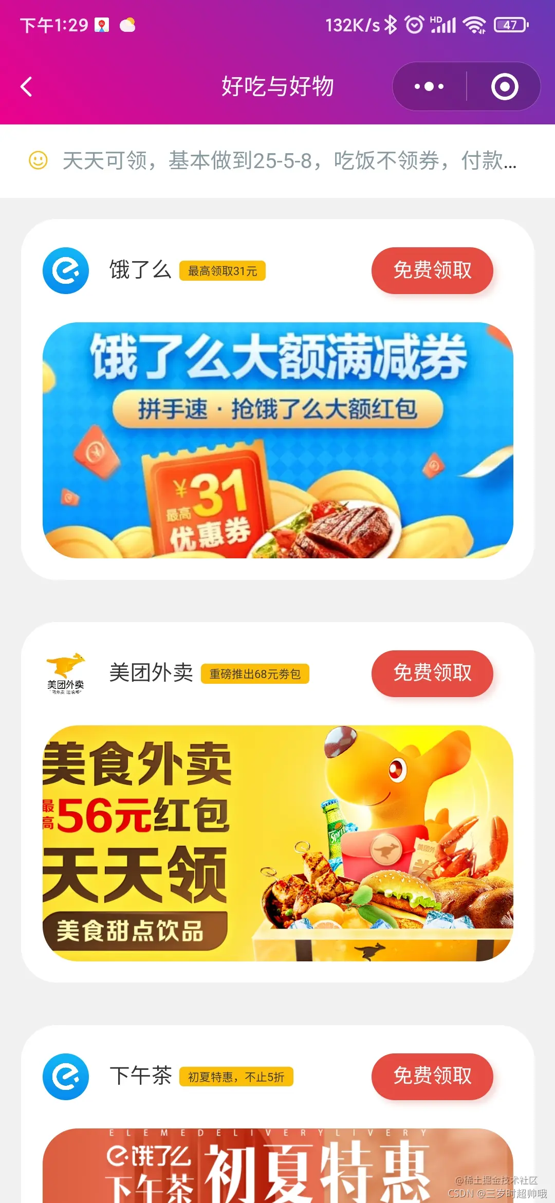 金钱 微信小程序集成外卖优惠券模块和微信小商店,开发者自行替换成自己的Url,用户使用即可实现盈利,同时体量大起来后发布信息也可以进行收费。