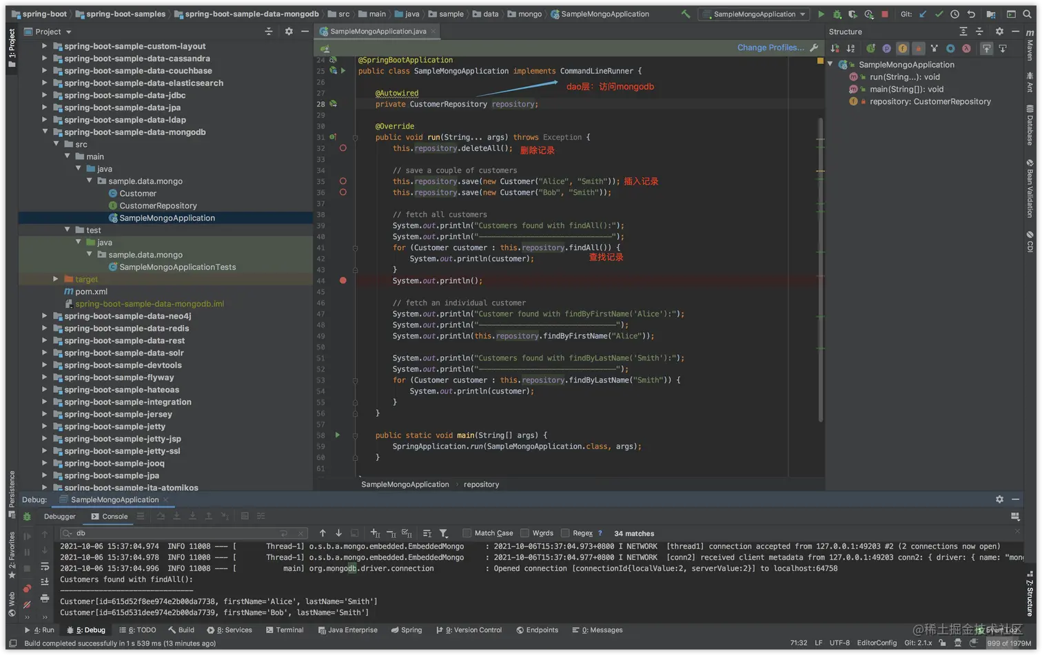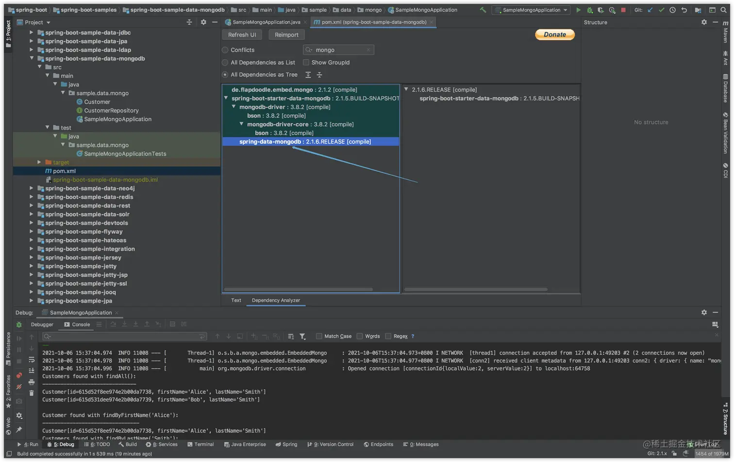 2021-10-06 15:32:18.153 INFO 11008 --- [ main] s.data.mongo.SampleMongoApplication : Started SampleMongoApplication in 30.691 seconds (JVM running for 74.371)