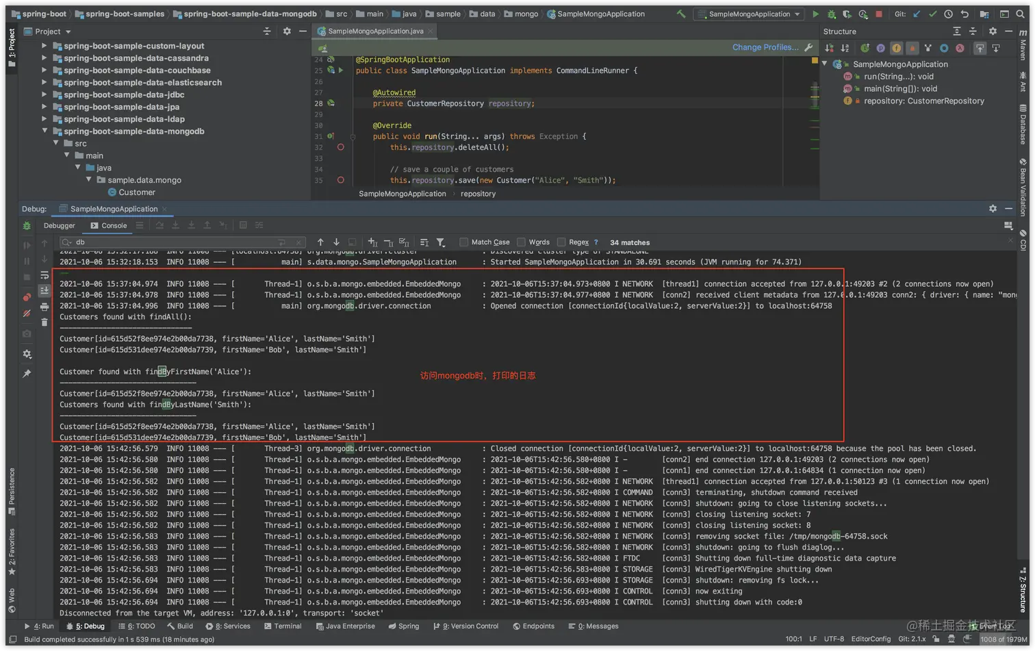 2021-10-06 15:31:47.985 INFO 11008 --- [ main] s.data.mongo.SampleMongoApplication : Starting SampleMongoApplication on gongzhihaodeMacBook-Pro.local with PID 11008 (/Users/gongzhihao/IdeaProjects/spring-boot/spring-boot-samples/spring-boot-sample-data-mongodb/target/classes started by gongzhihao in /Users/gongzhihao/IdeaProjects/spring-boot)