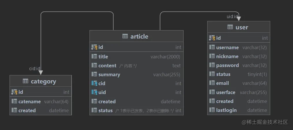 INNER JOIN article ON `user`.id = article.uid