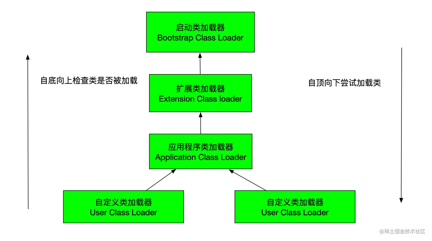 JVM 中内置了三个重要的 ClassLoader,启动类加载器(Bootstrap ClassLoader),这个类加载器使用C++语言实现,是虚拟机自身的一部分,其他所有的类加载器,这些类加载器都由Java语言实现,独立存在于虚拟机外部,并且全都继承自抽象类java.lang.ClassLoader。