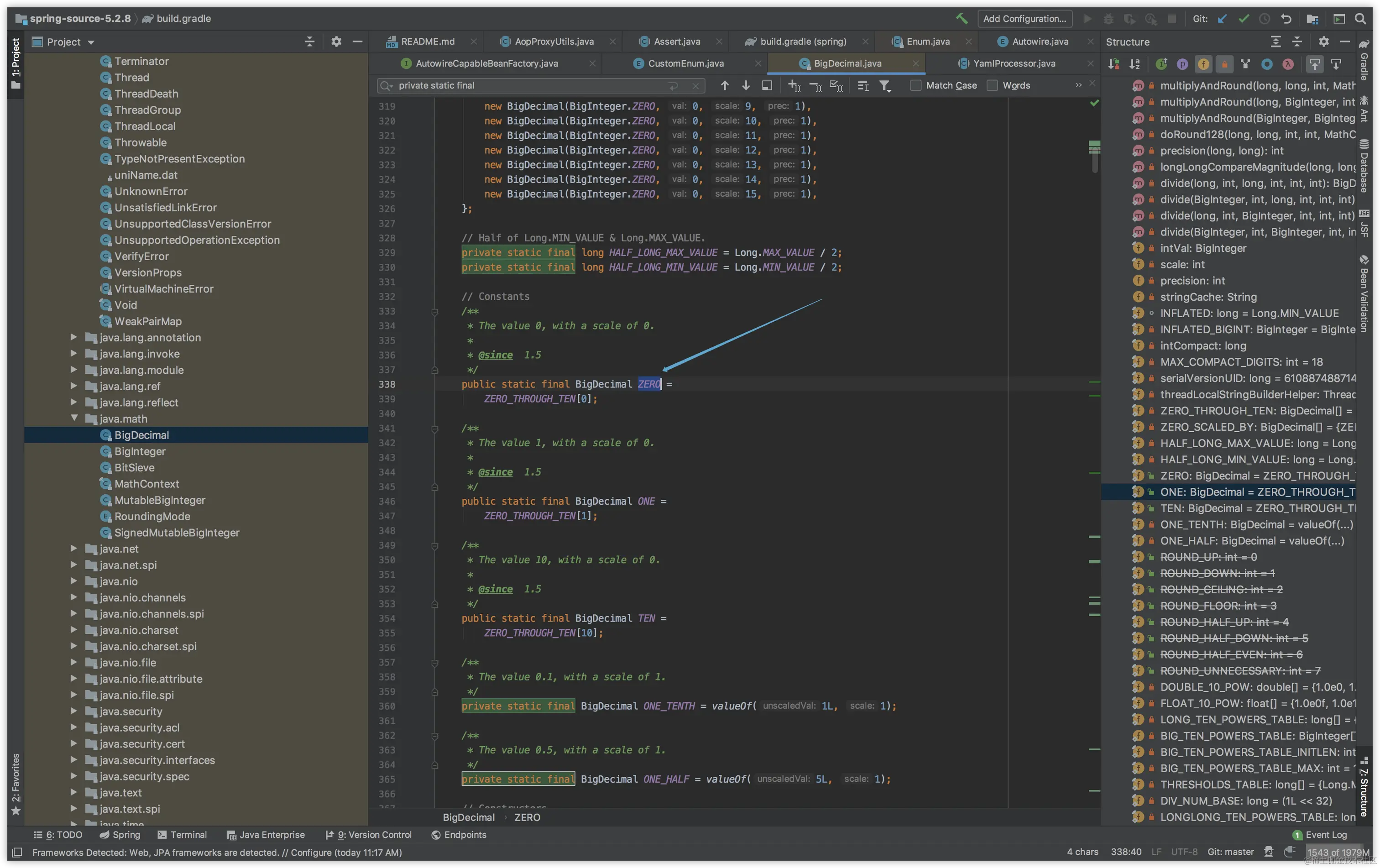 如果静态常量数据,只有当前类自己使用,那么就直接定义在当前类里面就可以了,没有必要定义在其他单独的类。而且直接用静态常量就可以了,也没有必要用枚举。比如:jdk-BigDecimal