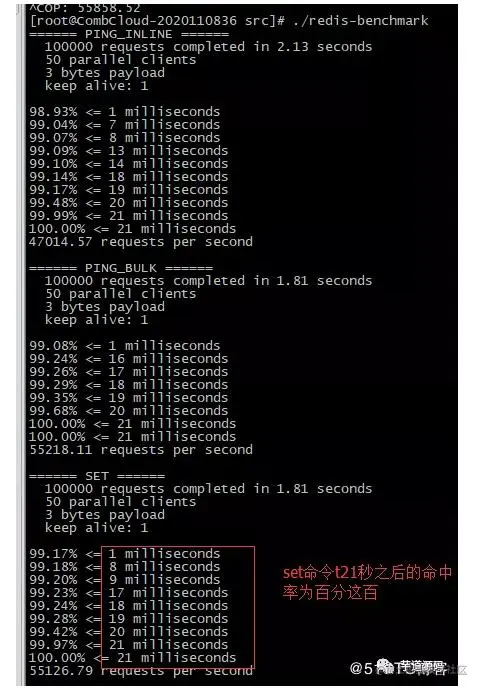 ./redis-benchmark -c 100 -n 5000