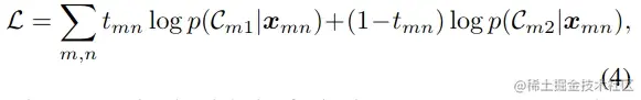 为了做出这样的约束, 给定一个概率, 也就是对应的像素 x 属于显著性/背景区域 C 的条件概率, 由该测度空间上两个向量的距离 d 对应的 softmax 函数表示得到: