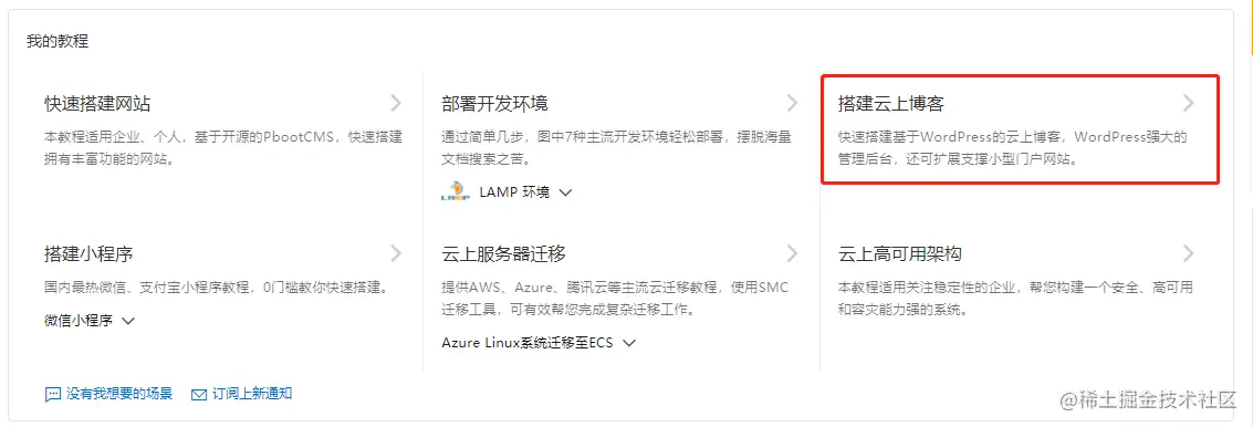 甚至我买的阿里云服务器里面就有现成的搭建 Wordpress 博客的教程,跟着教程一步步的操作就可以了: