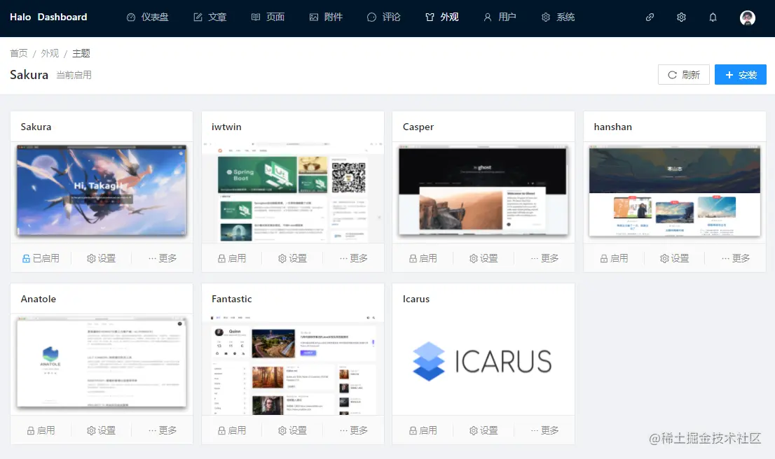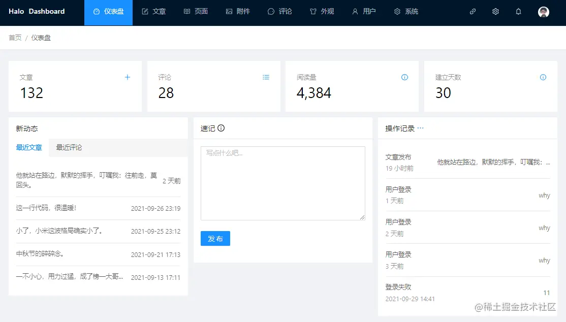 最后给大家看看 halo 的管理后台有些啥功能吧。