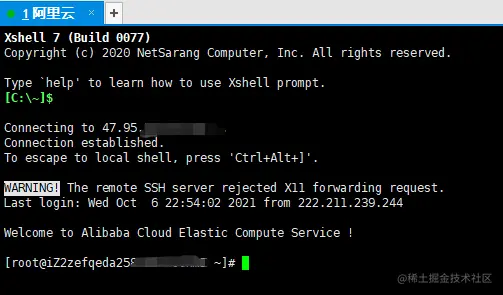 接着你就可以搞个链接工具,比如 xshell 连接到服务器上去,方便后续操作: