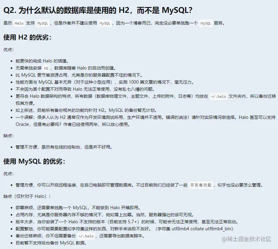 halo 默认的数据库采用的是 H2,具体原因,作者也在这里介绍了: