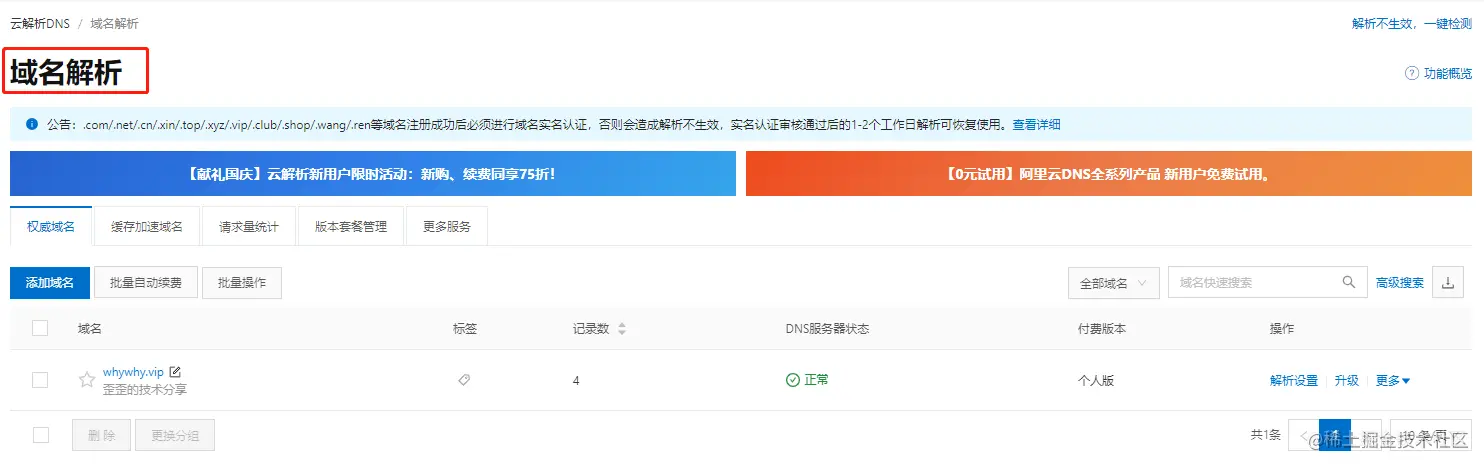 域名有贵有便宜的,我的便宜,买了三年,100 元钱。