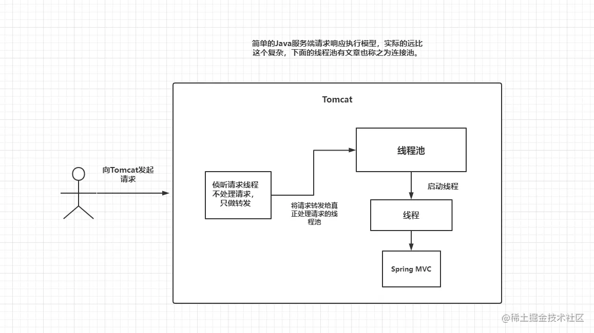 几乎每个Java程序员都了解过Spring MVC的执行流程, 毕竟这是面试的高频知识点, 那在配合上Tomcat呢? 有一道经典的面试题是在浏览器输入url后发生了什么。这是在考网络和前端,那我们将问题变一下呢, 即前端或者浏览器请求Controller的某个方法,到方法的执行发生了什么?这里屏蔽掉三次握手之类的东西,不再考虑页面渲染,只是考虑请求到Tomcat或其他应用服务器,由Tomcat到Spring MVC,再到执行的方法, 它的执行流程是怎么样的, 这个其实只用在原先Spring MVC执行流程上加上以下步骤即可:
