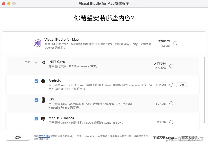 由于系统不同,Mac的VS只有这种,并没有Windows上那些模块...