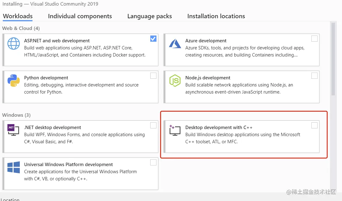 刚好一个同学在Windows打包时也遇到了这个问题,他的解决方法是:在VS中添加Desktop development with c++ 这个模块,然后就可以打出包了
