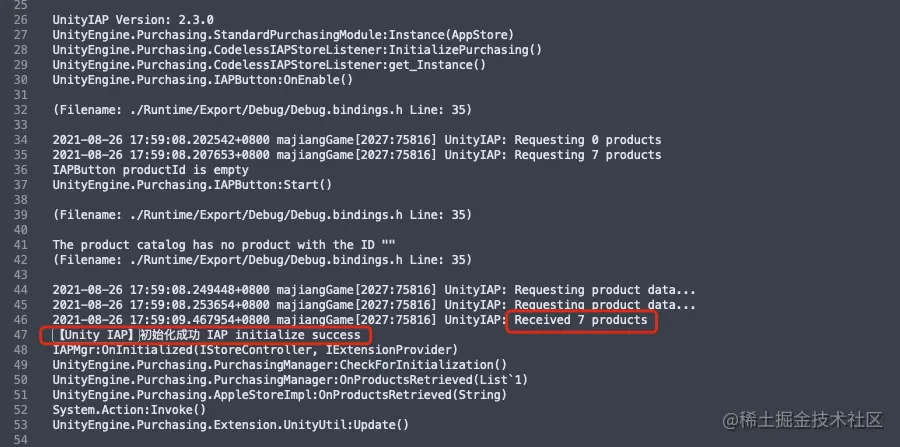 IAP初始化成功日志: