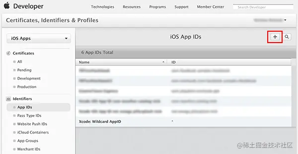 Apple Developer Center中,导航到相应的标识符部分: