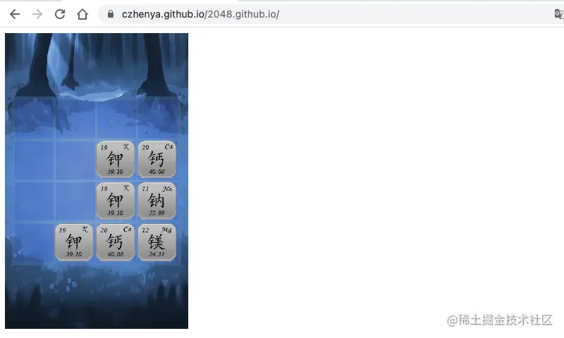 本文示例的URL:czhenya.github.io/2048.github… 点击即可在线玩耍「2048化学元素版」