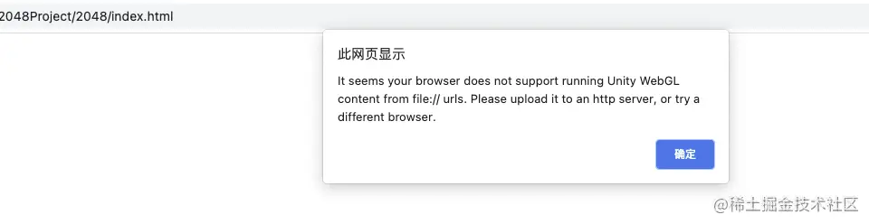 看起来你的浏览器不支持运行Unity WebGL内容从文件:// url。请将它上传到http服务器,或尝试不同的浏览器。