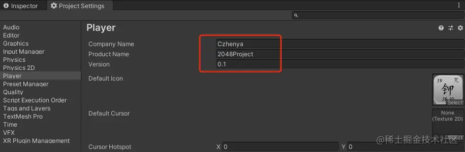 打开"Project Settings"面板 --> 左侧选项栏选择”Player“: