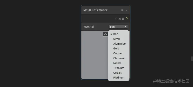 金属反射节点:返回基于物理材料的金属反射率值。