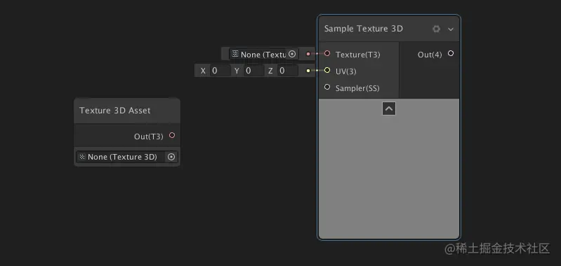 采样3D纹理资源(Sample Texture 3D):对纹理 3D 进行采样并返回一个Vector 4颜色值以在着色器中使用。