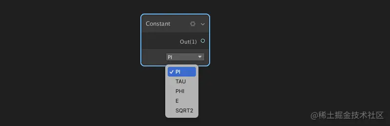 常量节点:定义一个一维常量的数字常数,选项值为: