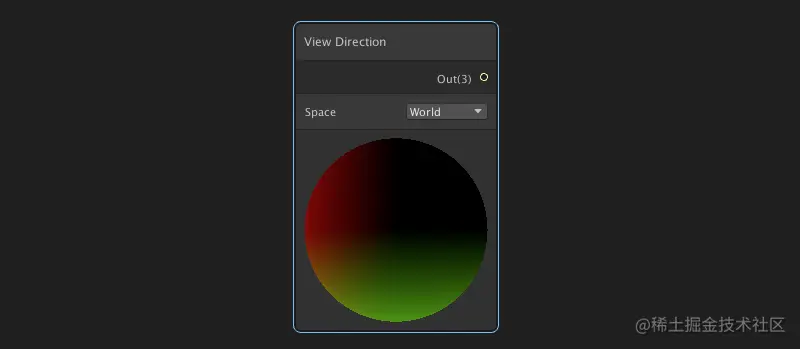 视图方向节点:返回模型中的顶点位置到摄像机的观察方向。四种模式和2.4(Screen Position 节点)解释一致。常用于计算高光,物体观察方向:使用相机的坐标向量 - 物体的坐标向量 = 物体的观察方向