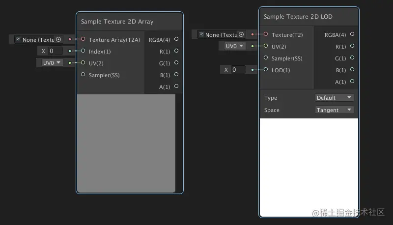 纹理数列(Sample Texture 2D Array):对Texture 2D Array 进行采样并返回Vector 4颜色值以在着色器中使用。